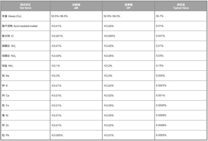 It is used for copper electroplating, preparing various copper compounds; it is used for organic catalyst, fireworks, pigment, paint and pesticide etc.